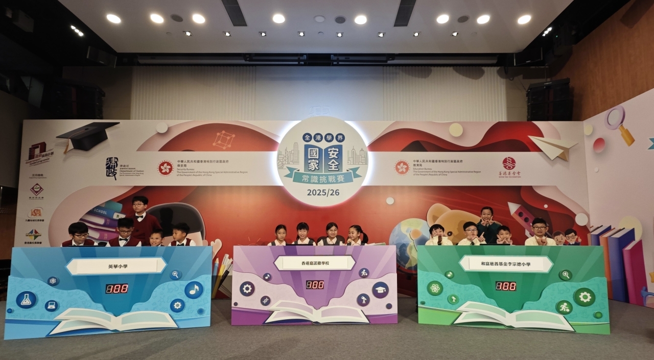 為提升學生對國家安全的認識,培養國民身份認同,本校學生早前積極參與「全港學界國家安全常識挑戰賽」。同學在首階段的網上問答初賽中表現出色,成績優異,因而成功取得晉級資格。隨後,本校派出四位從初賽中脫穎而出的六年級學生,於2025年11月19日(星期三)前往中環炮台里1號前法國外方傳道會大樓一樓,參加現場舉行的準決賽。賽事設有緊張刺激的搶答環節,我校代表全情投入,他們反應敏捷、積極作答。即使面對不確定答案的題目,他們亦毫不怯場,勇於嘗試,盡力爭取每一分,充分展現了求學求真、迎難而上的可貴精神。同學們從網上初賽到現場準決賽的優秀表現,是個人努力與學校重視國民教育共同成果的體現。期待他們在未來的學習中繼續保持這份積極進取的態度,力爭佳績!