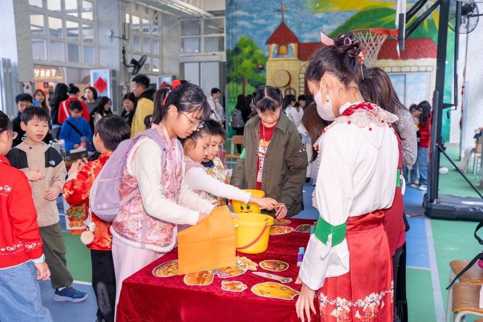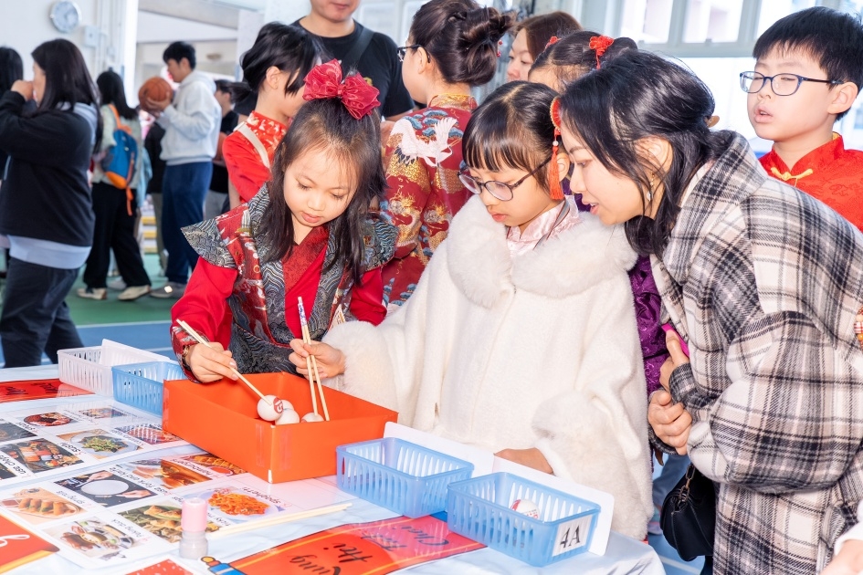 2月12日,學校與家長教師會合辦了「中華文化親子同樂日」,為學生和家長準備了豐富多彩的活動,包括了學科攤位、手工藝活動、親子攤位、讓大家從味覺、遊戲、手作到知識,全方位體驗中華美食的魅力;除此之外,當天還安排了氣勢磅礴的舞獅表演,讓大家感受春節的喜慶氛圍,以及備受期待的「親子CATWALK SHOW」,學生與家長共同演繹與飲食文化有關的中華傳統服飾,場面温馨。