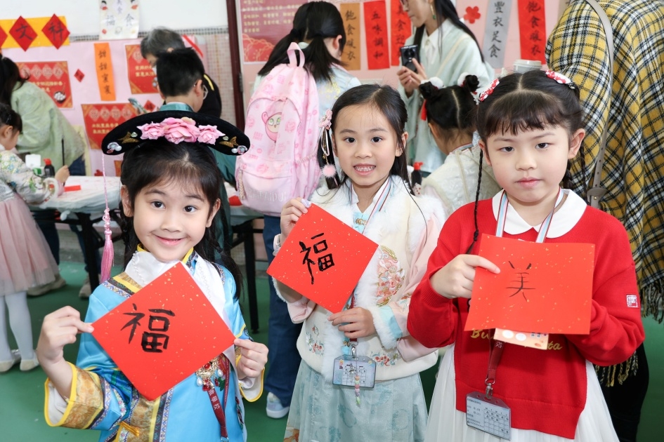 當天,老師、家長和學生們都穿上傳統華服,聚首一堂,共同參與各項精彩活動,現場洋溢着一片融洽、熱鬧的氣氛。