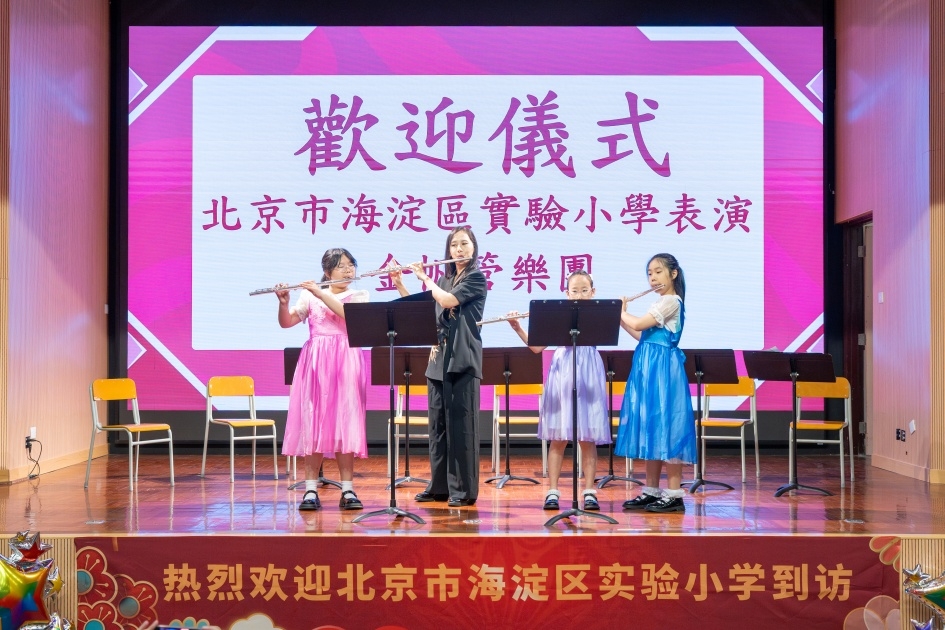 北京海淀區實驗小學的二十位同學及四位老師於二零二五年十月二十三日到我校參訪,展開了一連串豐富的姊妹學校交流活動。這次交流由溫馨的歡迎儀式拉開序幕,本校校長首先致上歡迎辭,並互贈紀念品,寓意兩校情誼長存。緊接著的是精彩的表演環節,我校學生表演了柔美的中國舞、富動感的西方舞、悅耳的手鐘及創意無窮的沙畫,展現了他們的多元藝術才華;而北京金帆管樂團則演奏了幾首音樂,娓娓動聽,嬴得不少掌聲,並以「長征精神」為主題進行了富啟發性的學習成果匯報,堅毅不屈的精神深深感動了在場師生。