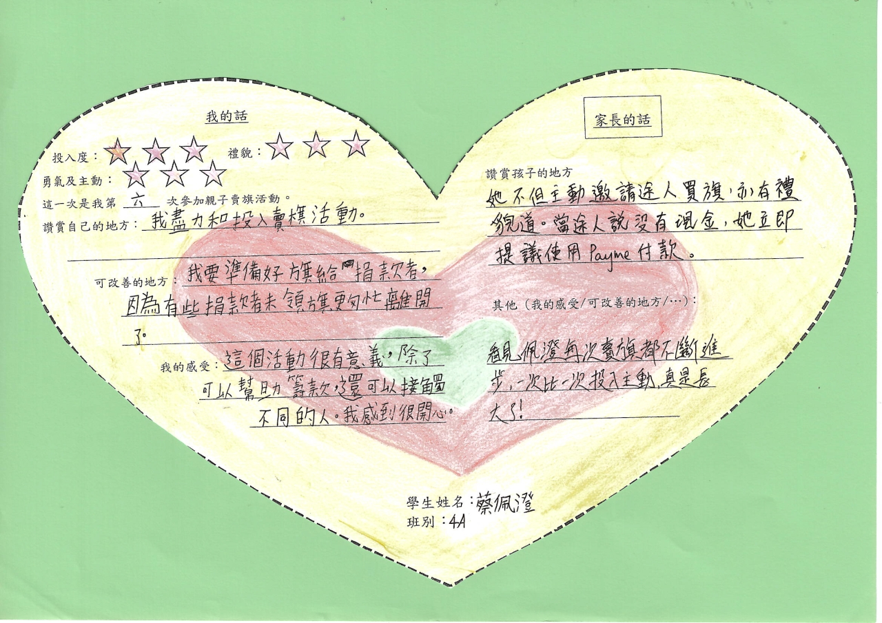 在活動過程中,學生表現積極主動,態度友善且有禮。他們主動走向路人,以清晰而溫和的聲音邀請途人購買旗幟。即使面對匆忙的行人或婉拒的市民,學生們依然保持微笑,並不忘說聲「多謝」或「唔該」,展現出良好的禮貌與耐性