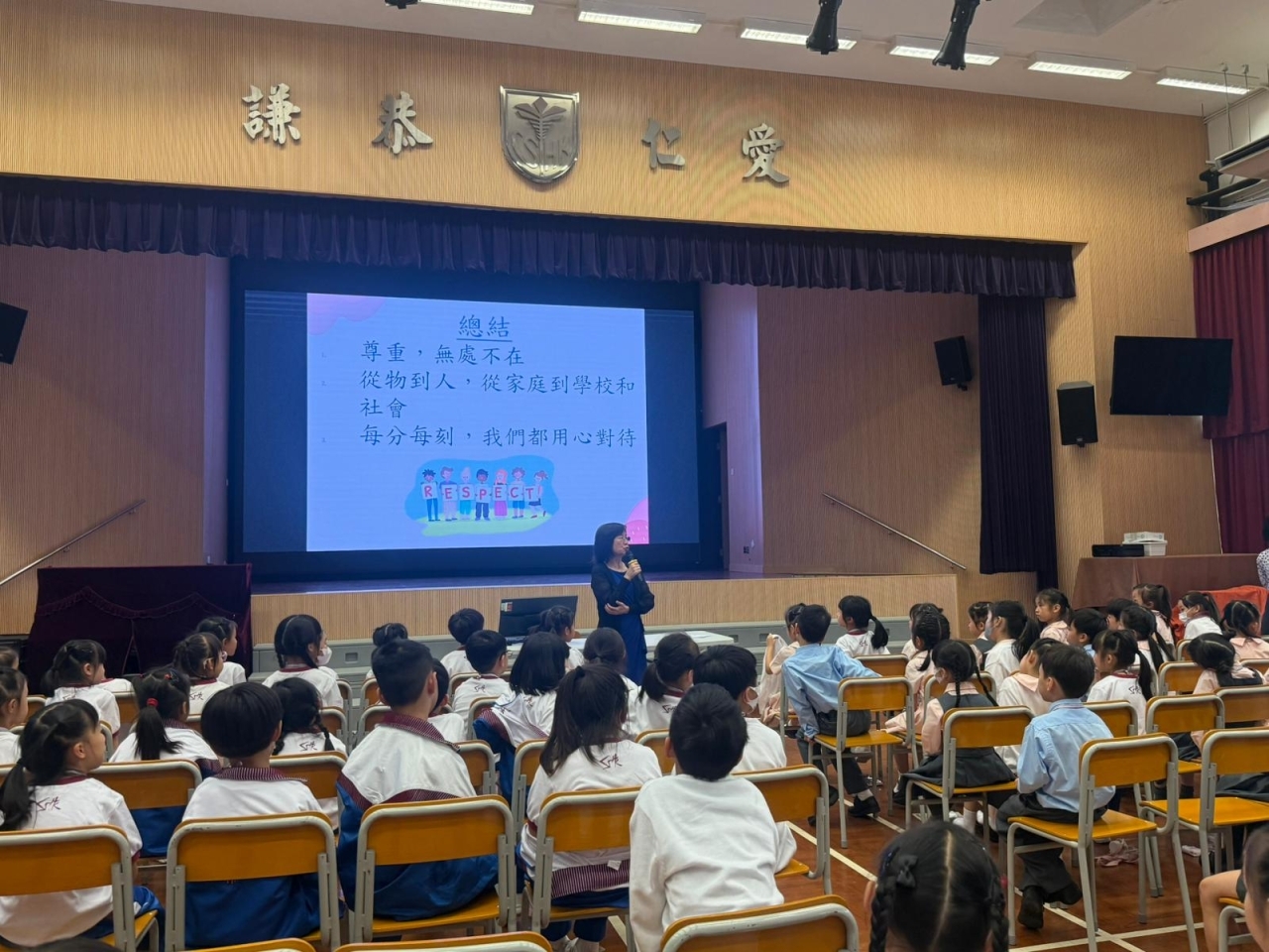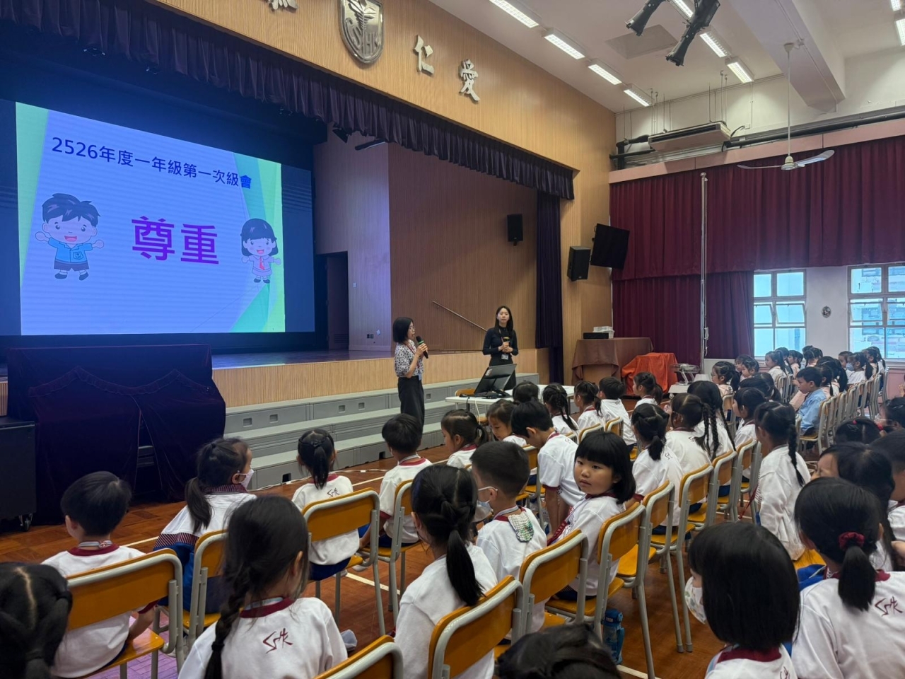 第一次一年級級會的主題是「尊重」,亦是我校今年的重點主題。級會透過短片欣賞讓學生明白尊重人和物的方法,並從中領悟感恩的重要性,明白尊重是無處不在,從物到人,從家庭到學校,再到社會,是一種生活態度,令同學成為一個懂得尊重的小朋友。
