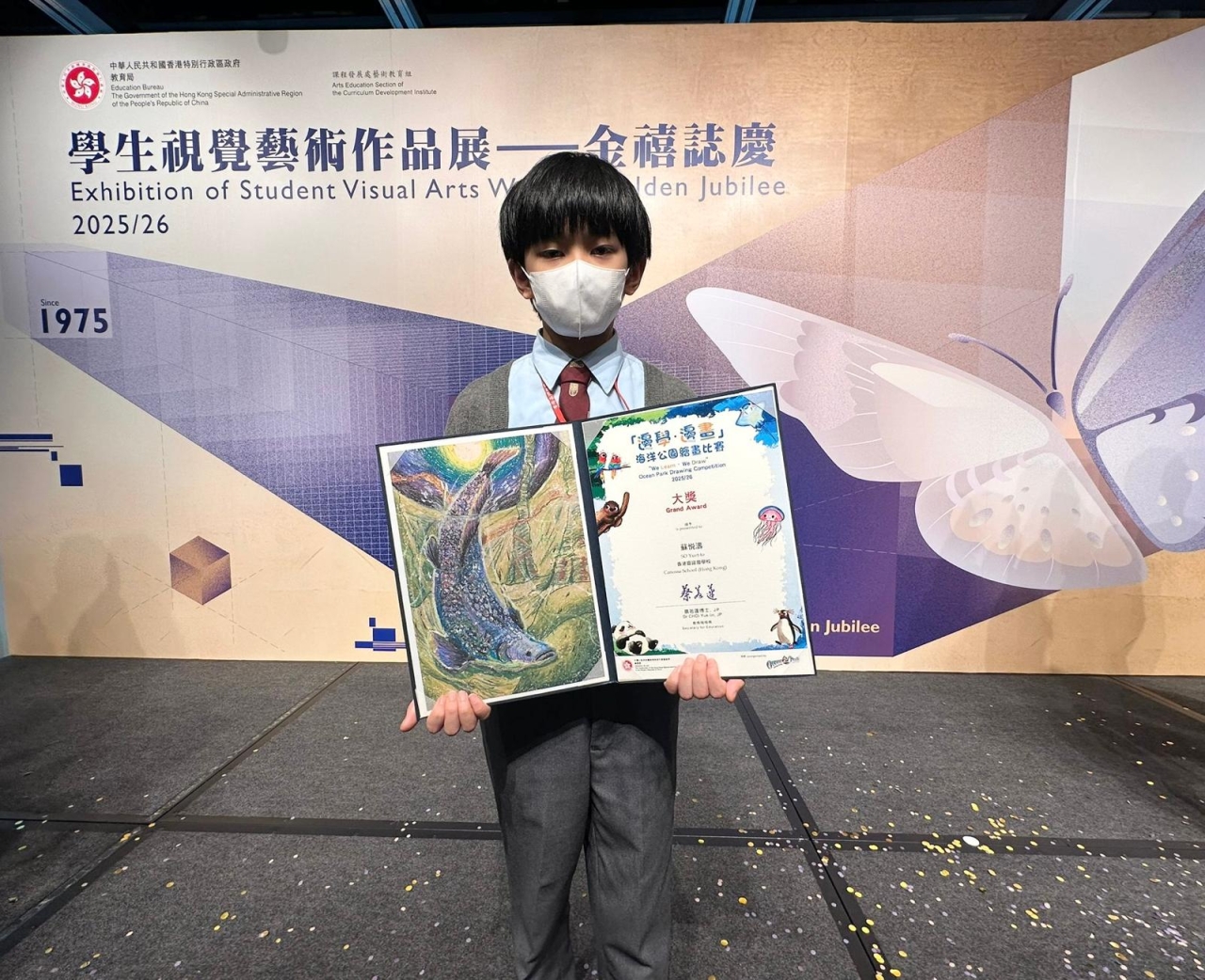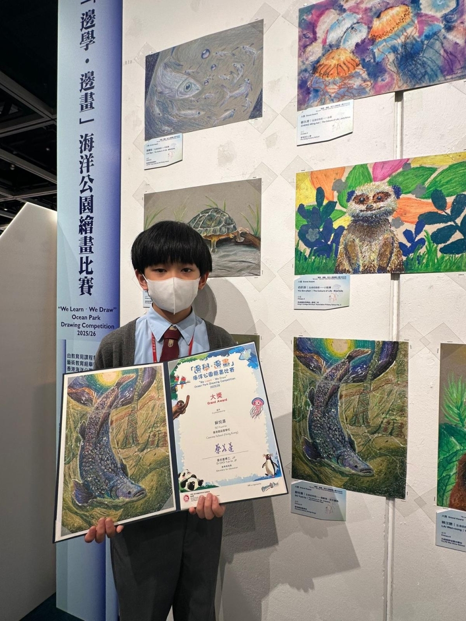 恭喜6D班蘇悦濤於「邊學.邊畫」海洋公園繪畫比賽2025/26獲得大獎。