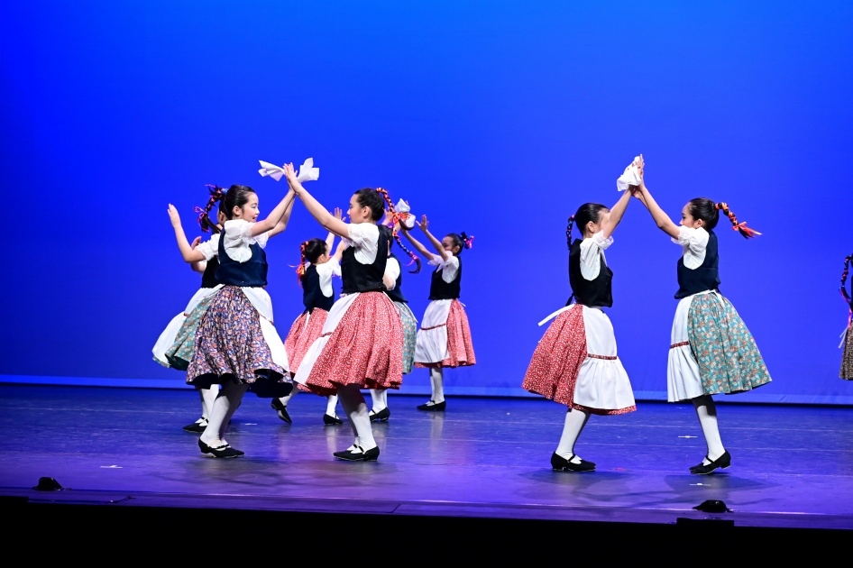 1月28日(星期三),本校18名四至六年級同學,參加了「第六十二屆學校舞蹈節——小學組西方舞(群舞)_高年級組」比賽,榮獲「甲等獎」。當天,同學演出的是匈牙利的民族舞蹈Zempleni Tancok,描述一班可愛的匈牙利女孩翩翩起舞的快樂樣子。