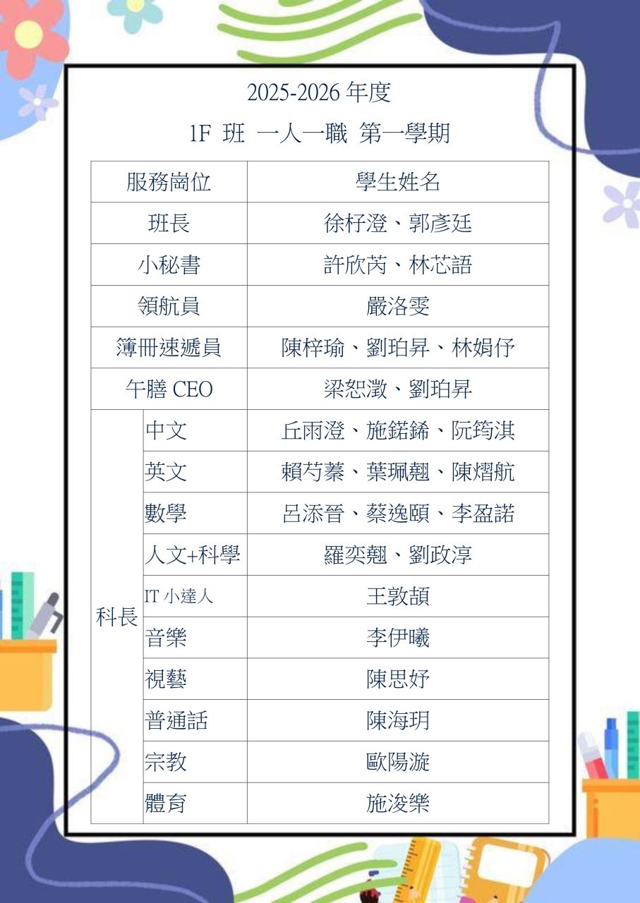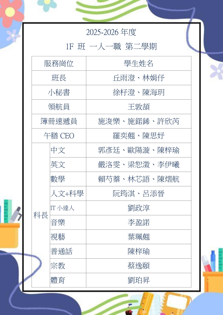 2025-2026家長委員及教師委員名單