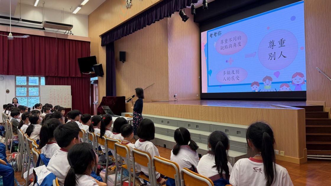 級會內容:是次級會主題為「尊重」,同學透過觀看短片及進行討論,明白到「尊重」的重要性。讓學生學會欣賞,知道即使對於同一件事物,各人都會有不同的觀點。我們應該對別人的觀點給予尊重,細心聆聽別人的看法,這樣才能開闊自己的眼界,以包容的心去接納他人,也能表達出對別人的尊重。