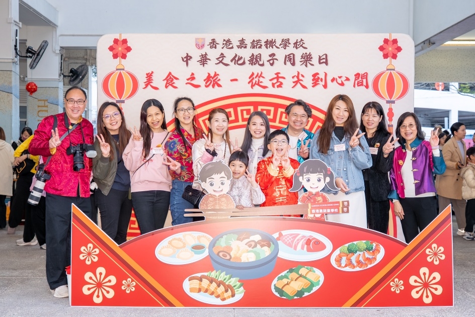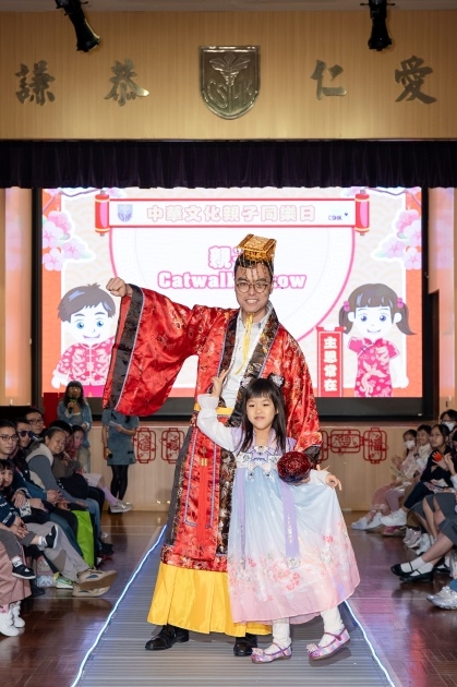 2月12日,學校與家長教師會合辦了「中華文化親子同樂日」,為學生和家長準備了豐富多彩的活動,包括了學科攤位、手工藝活動、親子攤位、讓大家從味覺、遊戲、手作到知識,全方位體驗中華美食的魅力;除此之外,當天還安排了氣勢磅礴的舞獅表演,讓大家感受春節的喜慶氛圍,以及備受期待的「親子CATWALK SHOW」,學生與家長共同演繹與飲食文化有關的中華傳統服飾,場面温馨。