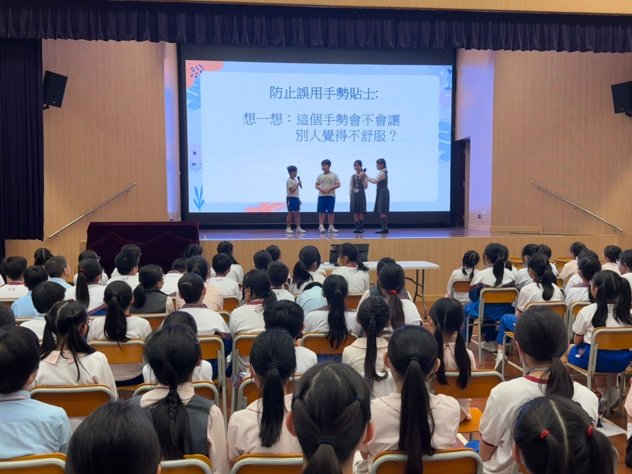 五年級於3月30日進行了第二次級會,是次級會主題為「道德、價值觀念」。同學以出色的演技呈現了兩套短劇,短劇內容探討了同學説粗俗語言和亂用手勢的原因,並提供了有效的解決方法,藉此提醒同學們要謹言慎行,建立正確的道德觀及價值觀,共同營造和諧的校園生活。