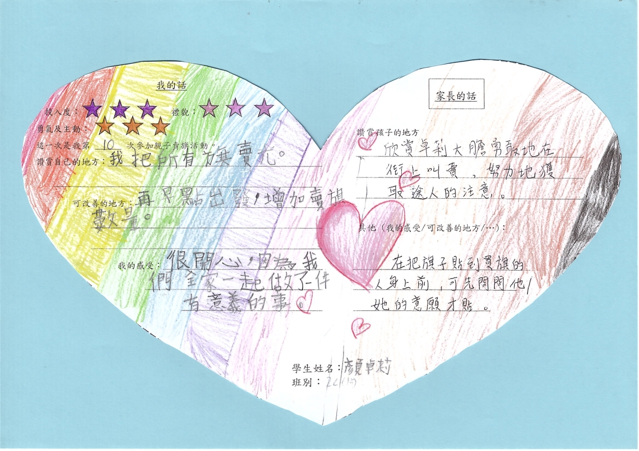 在活動過程中,學生表現積極主動,態度友善且有禮。他們主動走向路人,以清晰而溫和的聲音邀請途人購買旗幟。即使面對匆忙的行人或婉拒的市民,學生們依然保持微笑,並不忘說聲「多謝」或「唔該」,展現出良好的禮貌與耐性