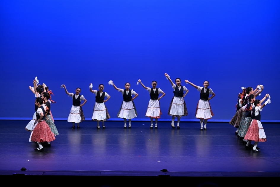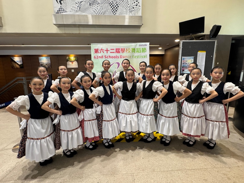 1月28日(星期三),本校18名四至六年級同學,參加了「第六十二屆學校舞蹈節——小學組西方舞(群舞)_高年級組」比賽,榮獲「甲等獎」。當天,同學演出的是匈牙利的民族舞蹈Zempleni Tancok,描述一班可愛的匈牙利女孩翩翩起舞的快樂樣子。