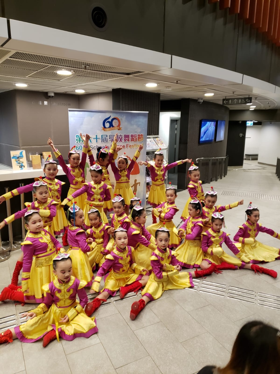 2024年2月1日,本校中國舞隊(初班)隊員,參加了第60屆學校舞蹈節小學低年級組中國舞(群舞),榮獲「甲級獎」。當天,同學演出的是「蒙古」的民族舞蹈,名為「筷樂」。評判讚賞同學演出投入、認真,舞蹈能充分展示了一群天真可愛的蒙古小女孩在草原上載歌載舞的熱鬧氣氛。